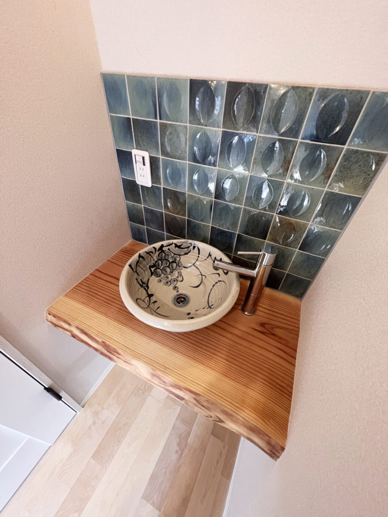 水まわり空間は、木とタイルを使用したお洒落な空間にリフォームいたしました。
