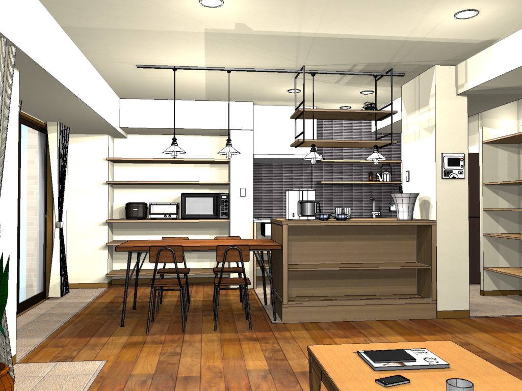 キッチンとリビングは広々とした空間に、キッチンはオリジナルのものにしていただきたいです。