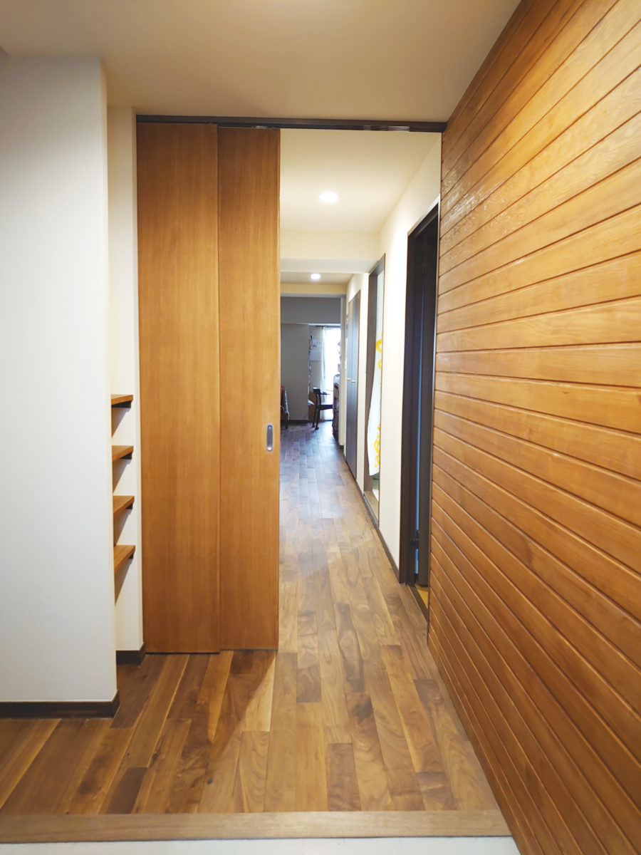 リビングや玄関まわりは木の温かみを感じられる住まいになりました。
