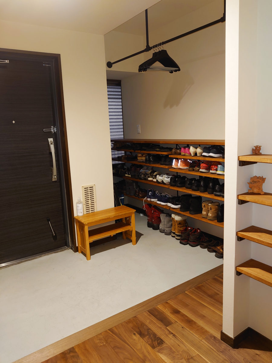 シューズボックスは大容量にしたことで家族全員のシューズを収納でき、すっきりとした印象になりました。