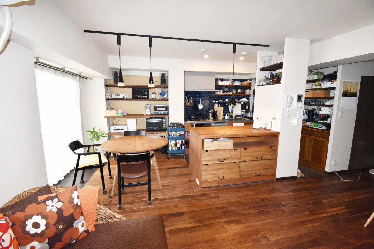 リビングとキッチンをひとつの空間にすることで、広々と過ごしやすい空間になりました。
