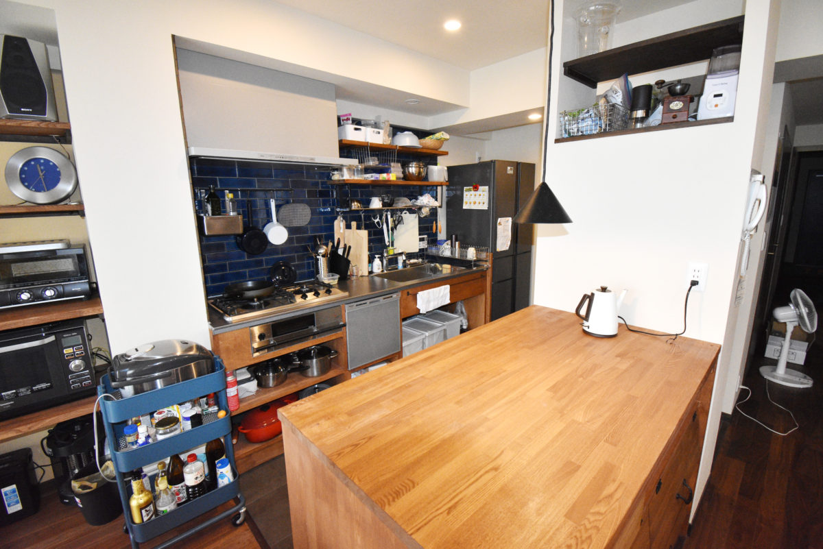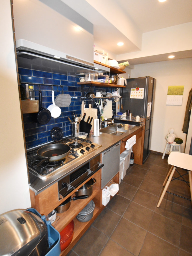 キッチンは、木とタイルを組み合わせたお洒落なデザインと使いやすさを両立させたオリジナルのキッチンです。