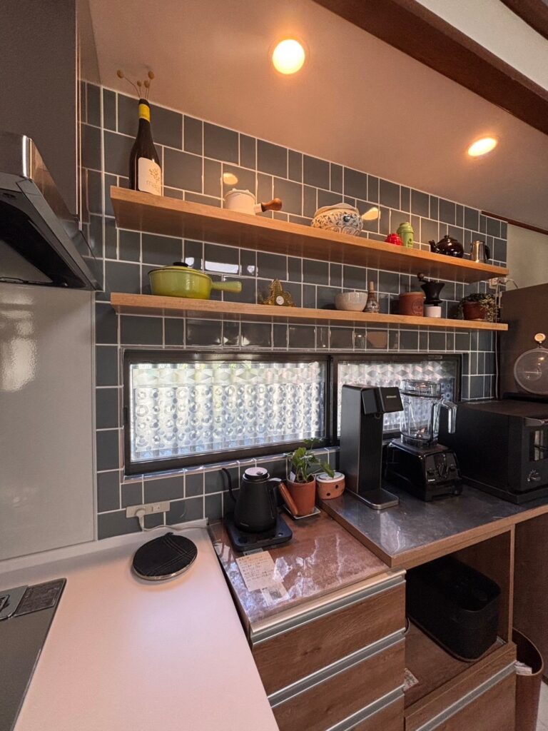 | 使用商材・建材 | システムキッチン(シンク側):LIXIL ノクト システムキッチン(コンロ側):タカラスタンダード トレーシア タイル:ヒラタタイル ソフィ 食洗機:ミーレ |