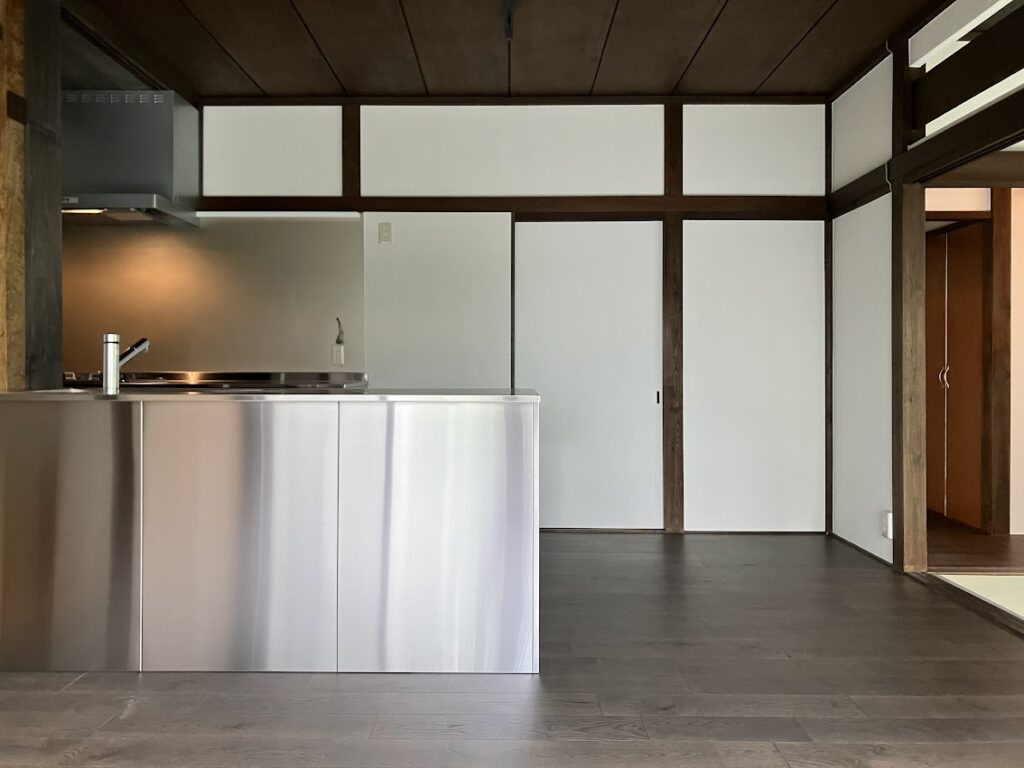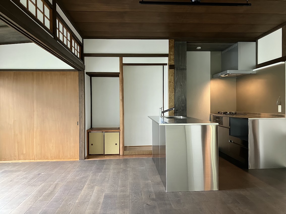 古家の良さを生かしつつ、プラン変更と断熱サッシや対面型のキッチンの導入など機能の追加で住みやすさをご提案しました。