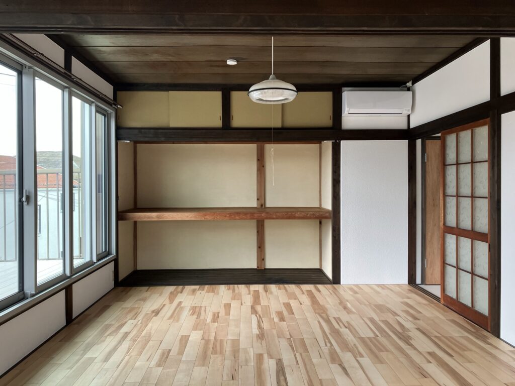 また、和室・洋室ともに、構造材や建具を丁寧に補修しながら内装を整え、「壊す」のではなく「活かす」リフォームを徹底。新設部分と既存部分が自然に調和するよう、素材や納まりにも細やかな配慮を行いました。