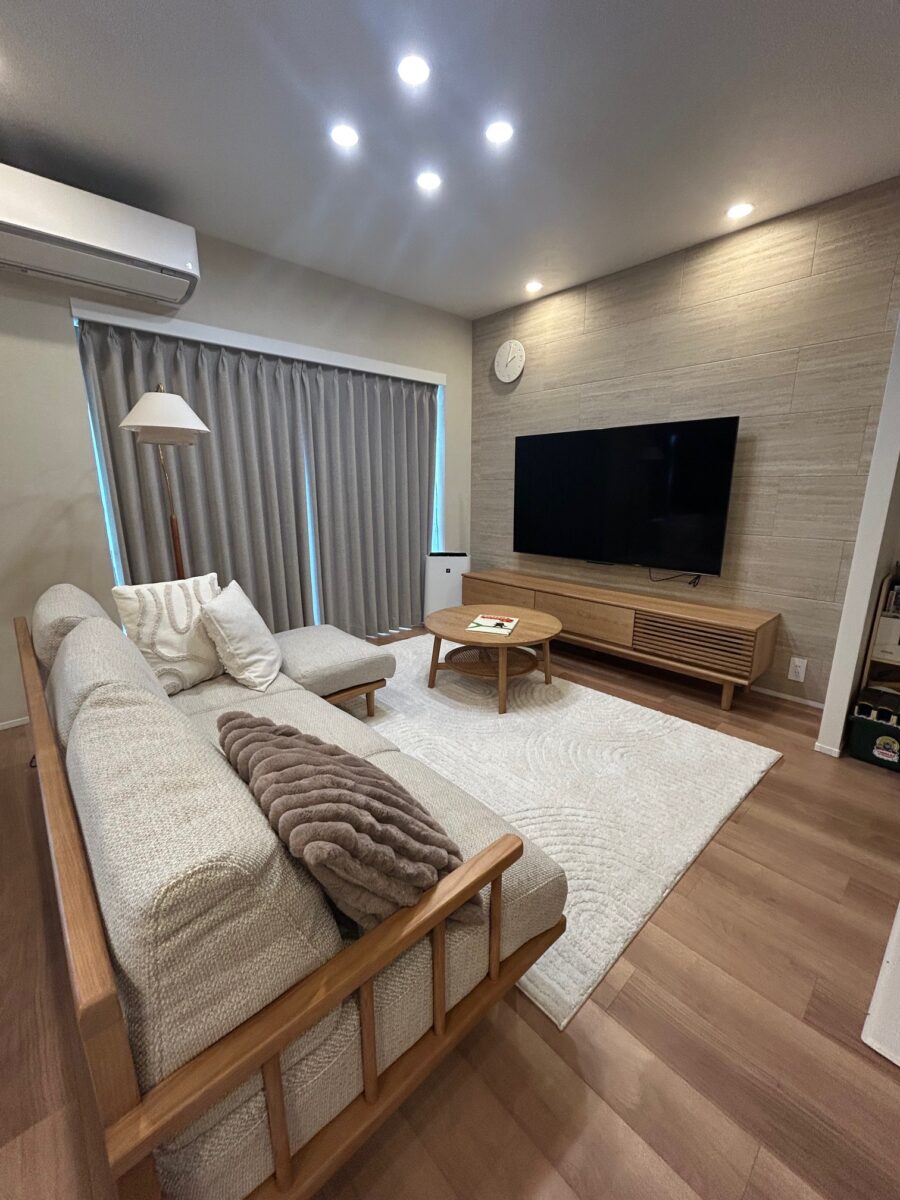 仕上げには木のぬくもりを感じる設備と白を基調とした内装、真鍮系の金物を組み合わせ、キッチンやリビングにはエコカラットを採用。見た目の美しさと使いやすさを両立した、Y様らしい心地よい住まいが完成しました。