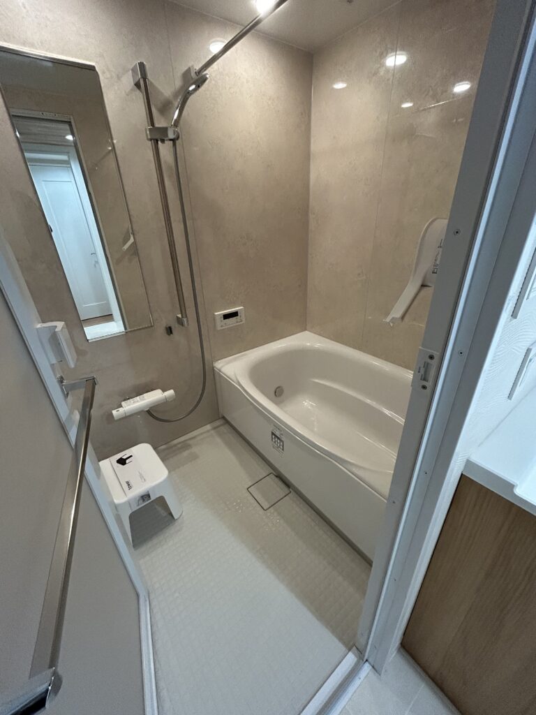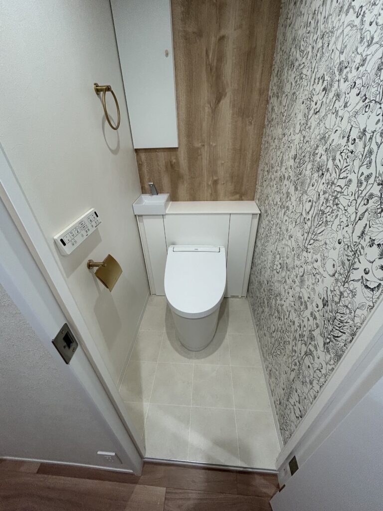 | 使用商材・建材 | システムキッチン:ウッドワン スイージー ユニットバス:LIXILリノビオV1317 洗面化粧台:ウッドワン 無垢の木洗面台 トイレ:LIXILJフィット タイル:LIXILエコカラット |